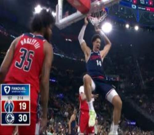 体育播报1月15日宣 今日,NBA常规赛,奇才对阵快船的比赛已经开打。奇才新援特雷·杨场边观战。解说比赛的前NBA...